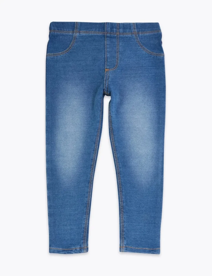 Throw on a pair of our cotton-rich denim jeggings and you’ll be ready for whatever the weekend brings. Regular fit with an elasticated waist and added stretch for comfort and flexibility. Pockets at the back and faded knees for a classic jeans look. Made with ethically sourced cotton.All M&S denim is made with responsibly sourced cotton and less water.