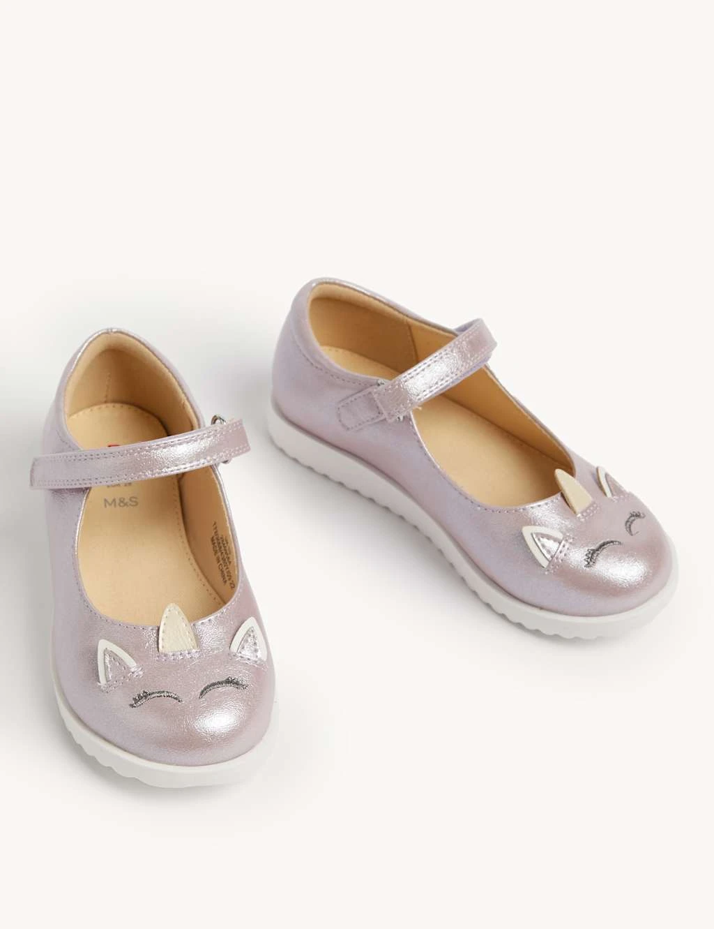 Put a little magic in their step with these cute unicorn Mary Jane shoes. Made with an easy-to-adjust riptape fastening. Designed in an all-over metallic finish with a unicorn face on the toes.