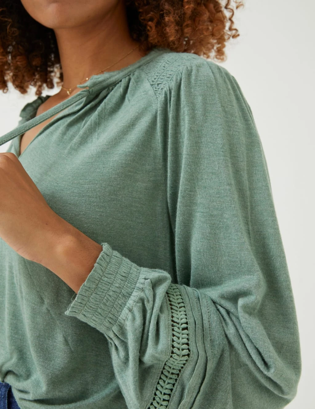 With its flowing fabric and shirred detailing, this FatFace tunic is a pretty piece for casual days. It’s cut in a comfy regular fit, with a tie fastening at the notch neckline. The long puffed sleeves are embellished with lace inserts and pintucks, adding to the feminine feel.