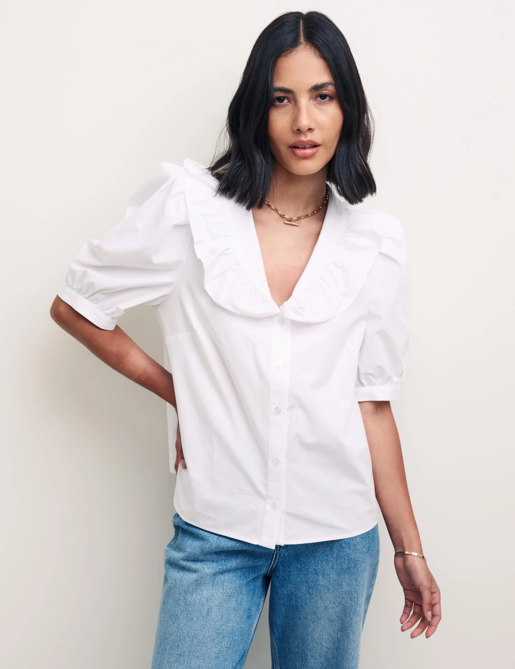 Organic Cotton Collared Puff Sleeve Blouse