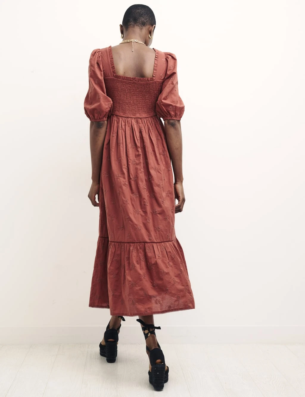 Organic Cotton Embroidered Midi Tea Dress
