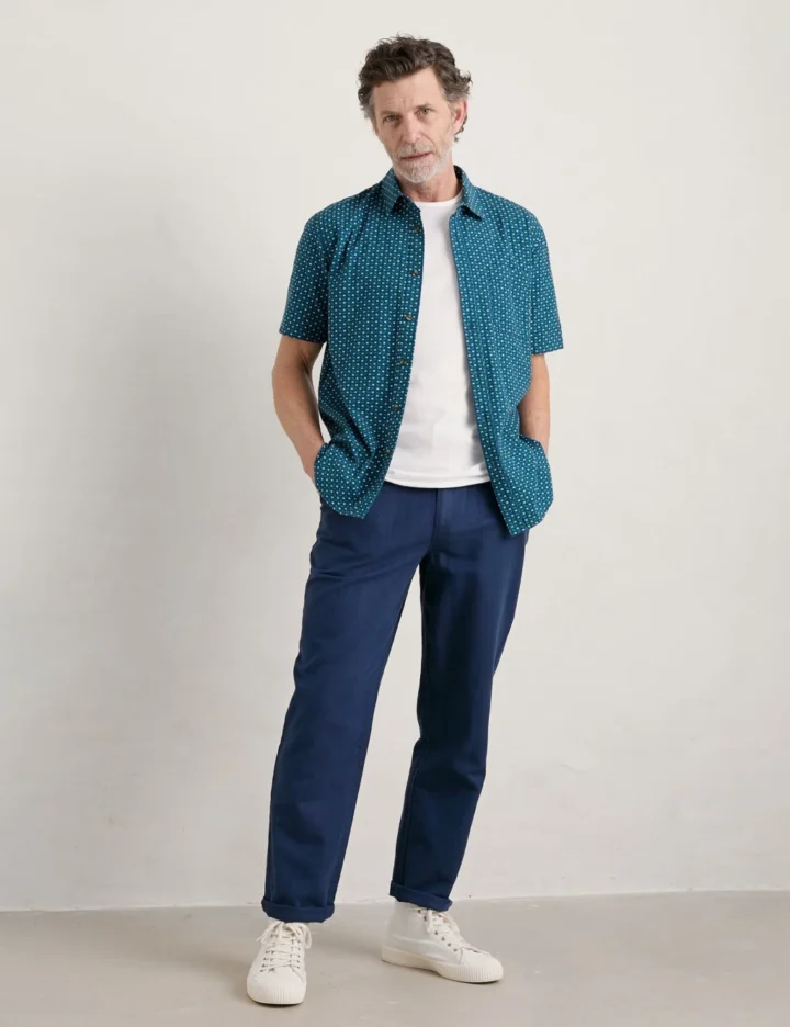 Crafted from breathable organic cotton with a lively print, this Seasalt Cornwall shirt is perfect for easy summer style. It’s made in a comfy regular fit, with a smart collared neck and breezy short sleeves. This button-through style is complete with a handy chest pocket.