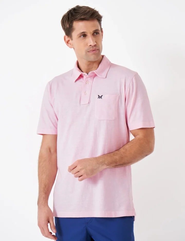 This pure organic cotton polo shirt from Crew Clothing has been gently laundered, so it feels soft from the very first wear. It’s cut in a comfy regular fit, with airy short sleeves and a neat three-button neckline. Embroidered branding under the collar and a crossed-oars logo on the chest’s patch pocket ensure a refined finish.
