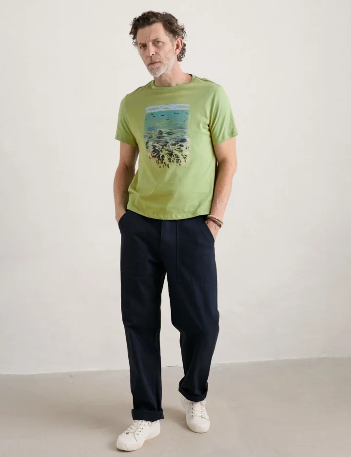 Bring a touch of the sea wherever you go with this Seasalt Cornwall t-shirt featuring an artistic coastal graphic. It’s cut to a regular fit, with a classic crew neckline and short sleeves. Pure organic cotton ensures a soft, breathable wear.