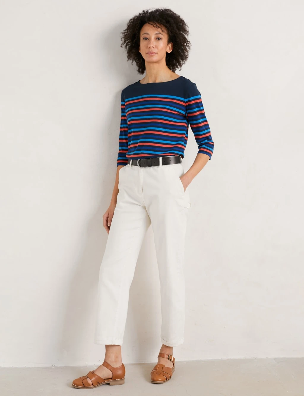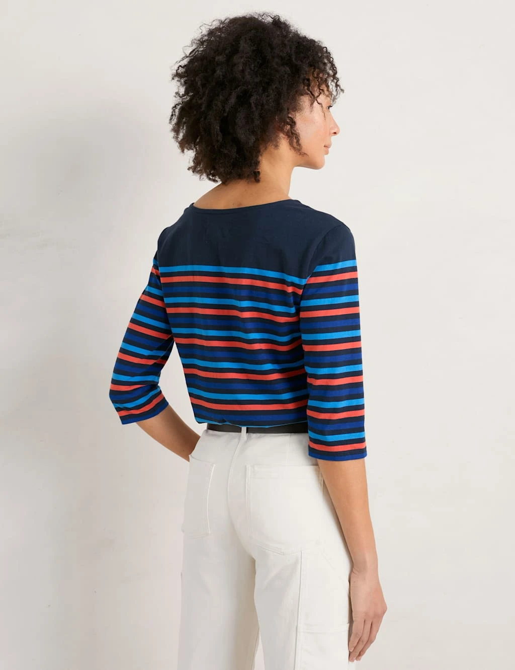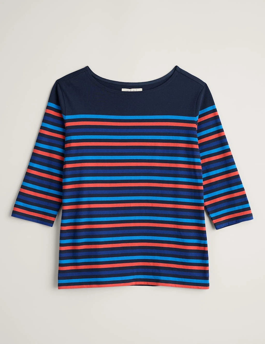 Bring a pop of colour to casual looks with this organic cotton striped t-shirt by Seasalt Cornwall. It’s cut to a regular fit and features an elegant slash neckline, three-quarter sleeves and a low hip-length hem.