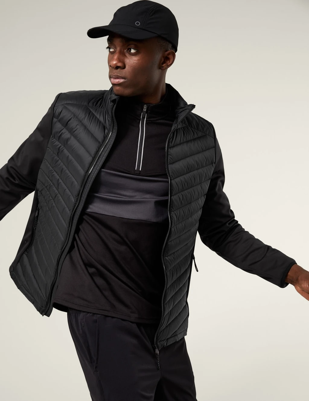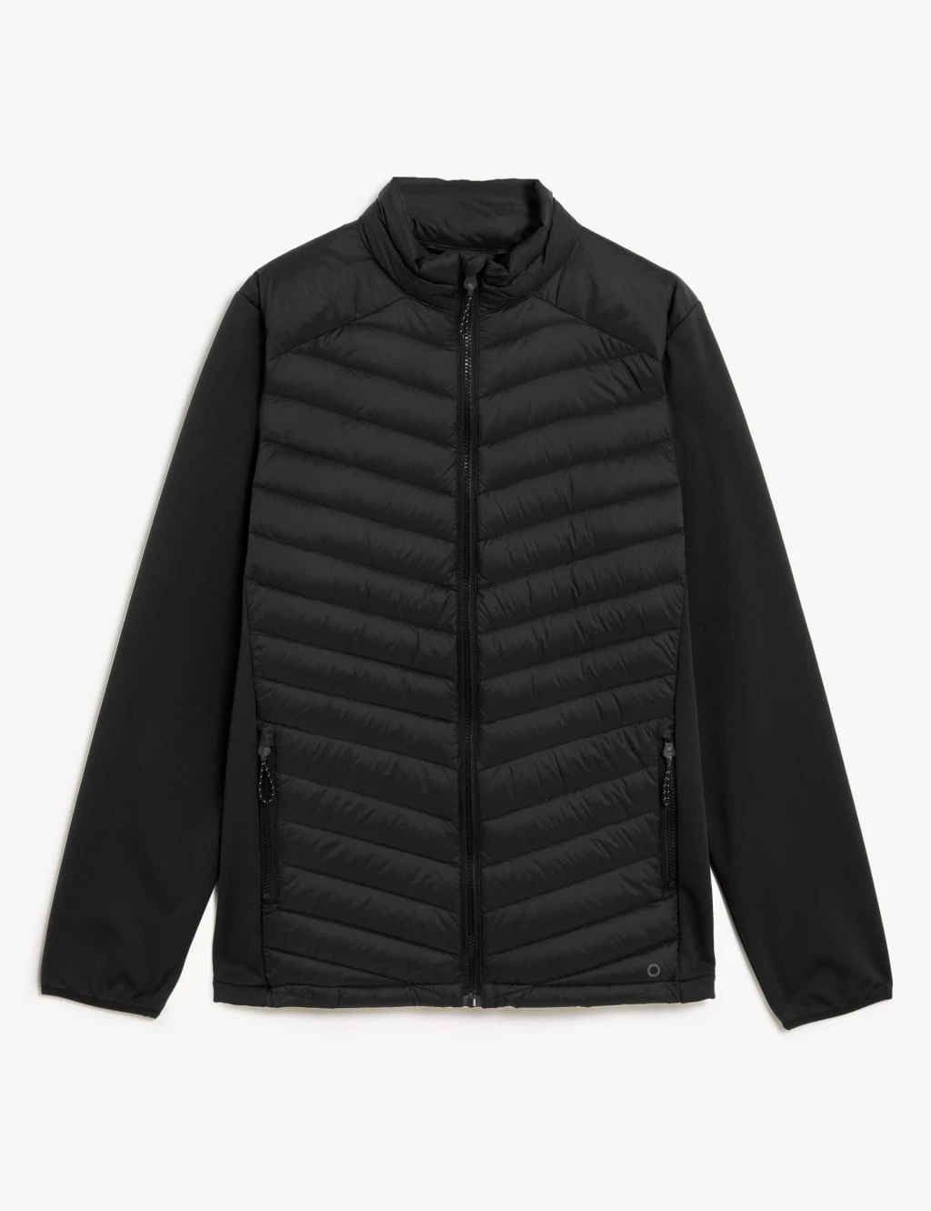 Form and function combine with this stylish puffer jacket from our Goodmove collection. It’s cut in a regular fit with a cosy funnel neck and long sleeves with snug elasticated binding on the cuffs. Perfect for outdoor adventures, this lined piece has a lightly padded gilet that provides insulation. The stretch side panels and sleeves move comfortably with you. Plus, thanks to water-resistant Stormwear™ technology, you can face light rain with confidence. Keep your essentials close with two internal key pockets and two exterior zipped pockets.