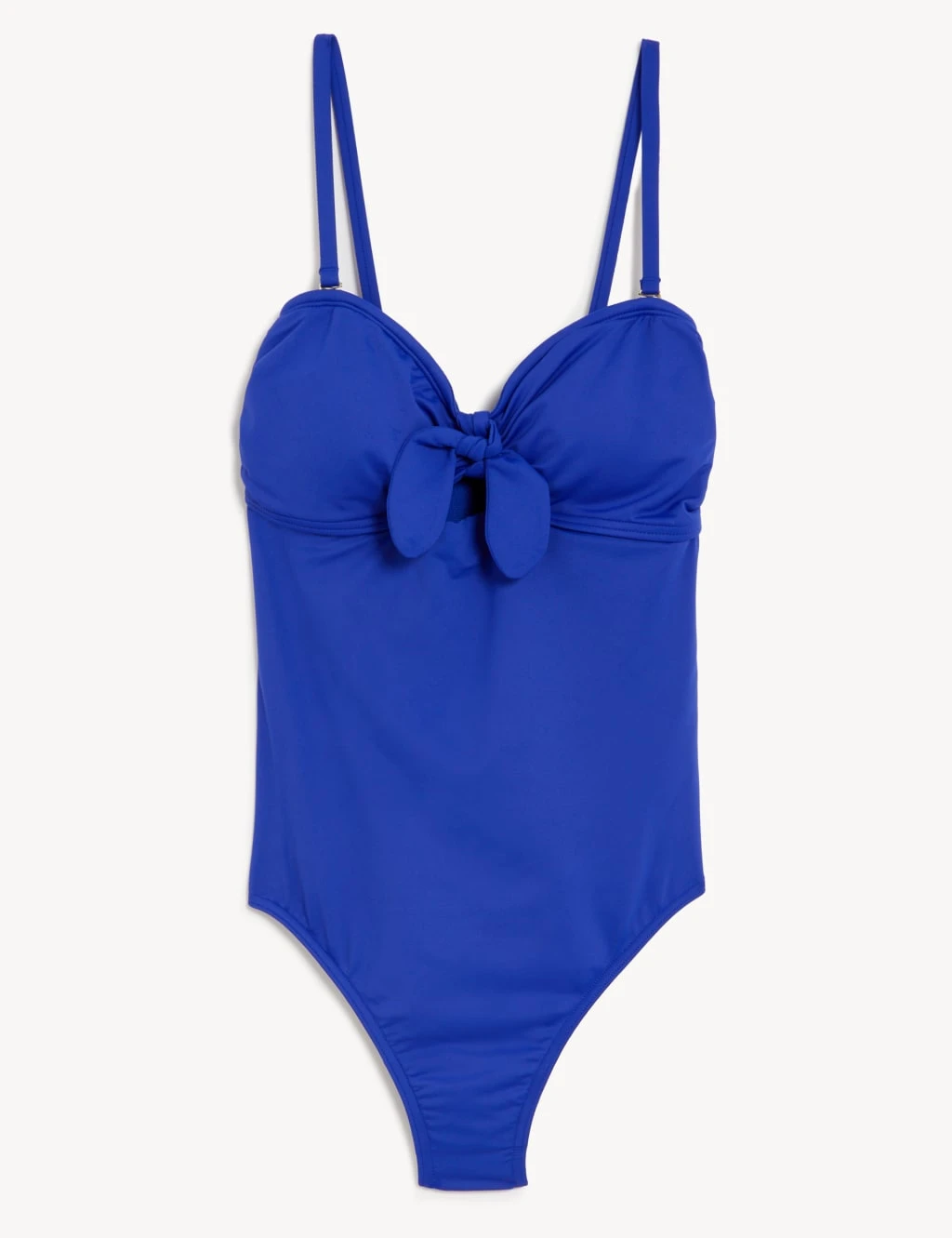 The slim straps on this tie-front swimsuit can be detached to create a classic bandeau look. Designed in a regular fit, with added stretch to hold its shape. Removable padding in the cups and a full lining offer extra comfort. Our Sun Smart UPF50+ finish helps to guard against UV rays. M&S Collection: versatile styles in modern shapes with unique and playful details.