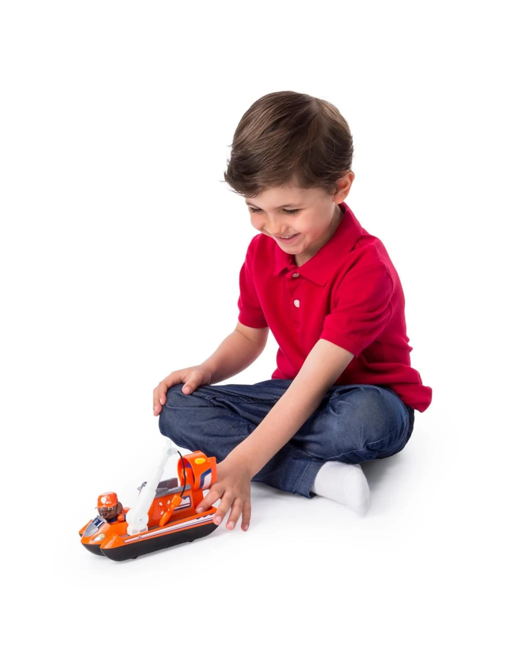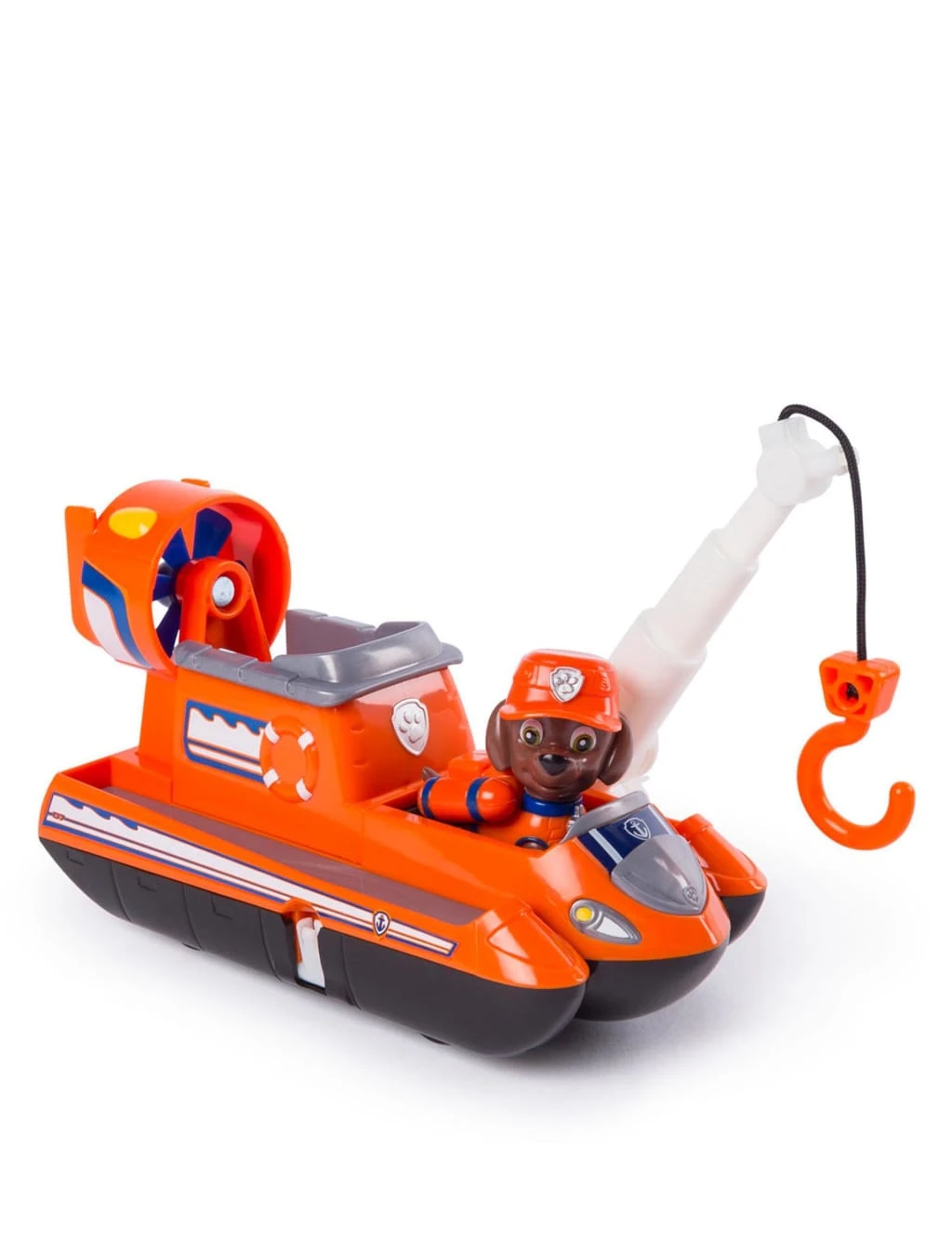 Join Zuma as he prepares to save the day on the Paw Patrol Ultimate Rescue hovercraft. This toy has a moving rescue hook and propellers to aid storytelling. It comes with a Zuma character figurine, plus space for another pup to join the adventure. Suitable for children over 3 years.