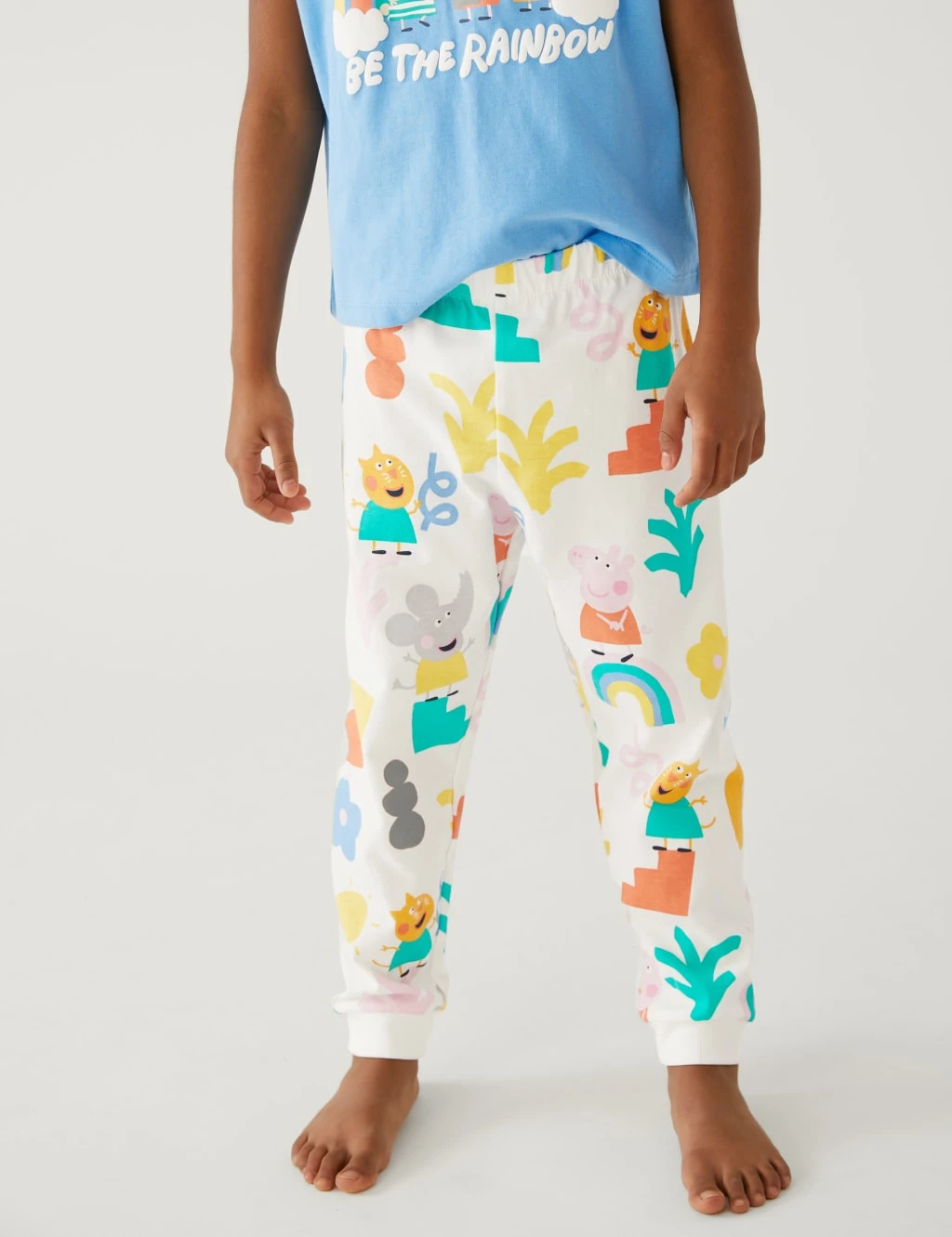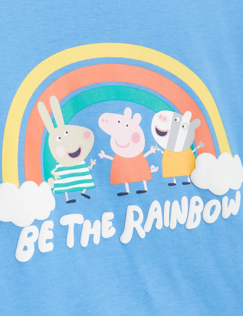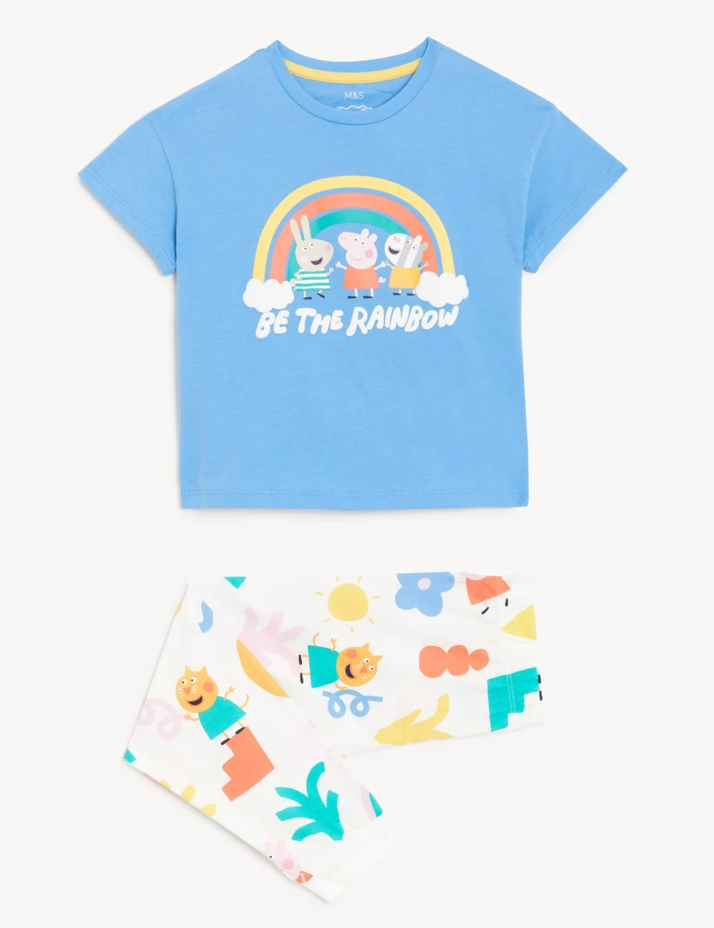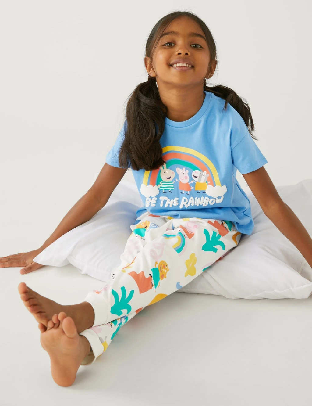 Young Peppa Pig™ fans will love these pure cotton pyjamas. Cut in a comfy regular fit, the set includes a short-sleeved top and a pair of bottoms with an elasticated waist and a playful all-over print. The tee is finished with a sweet graphic and a ‘Be the rainbow’ slogan.