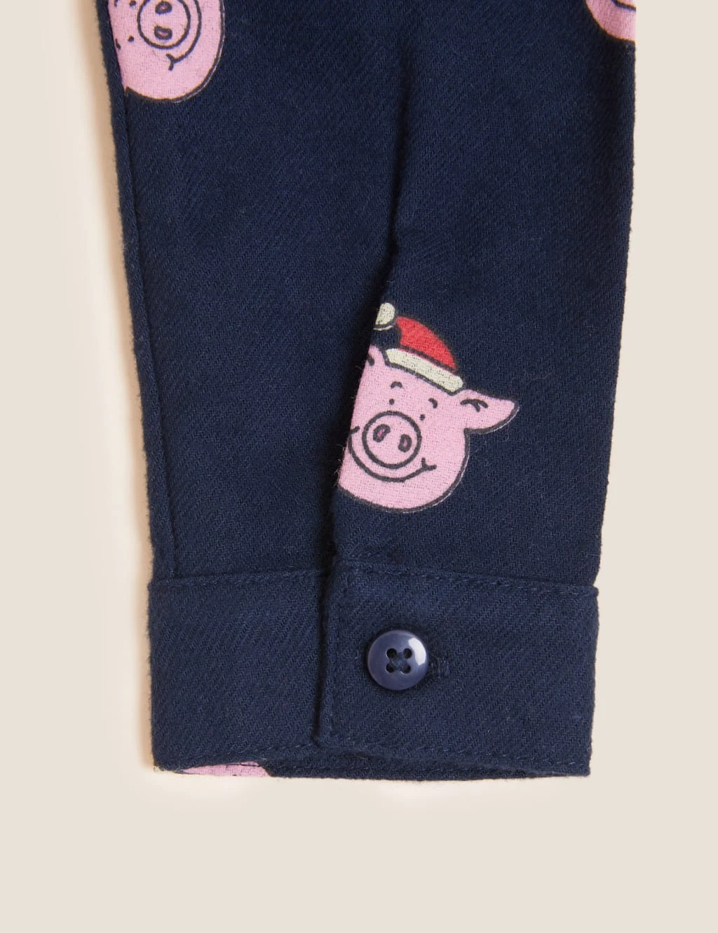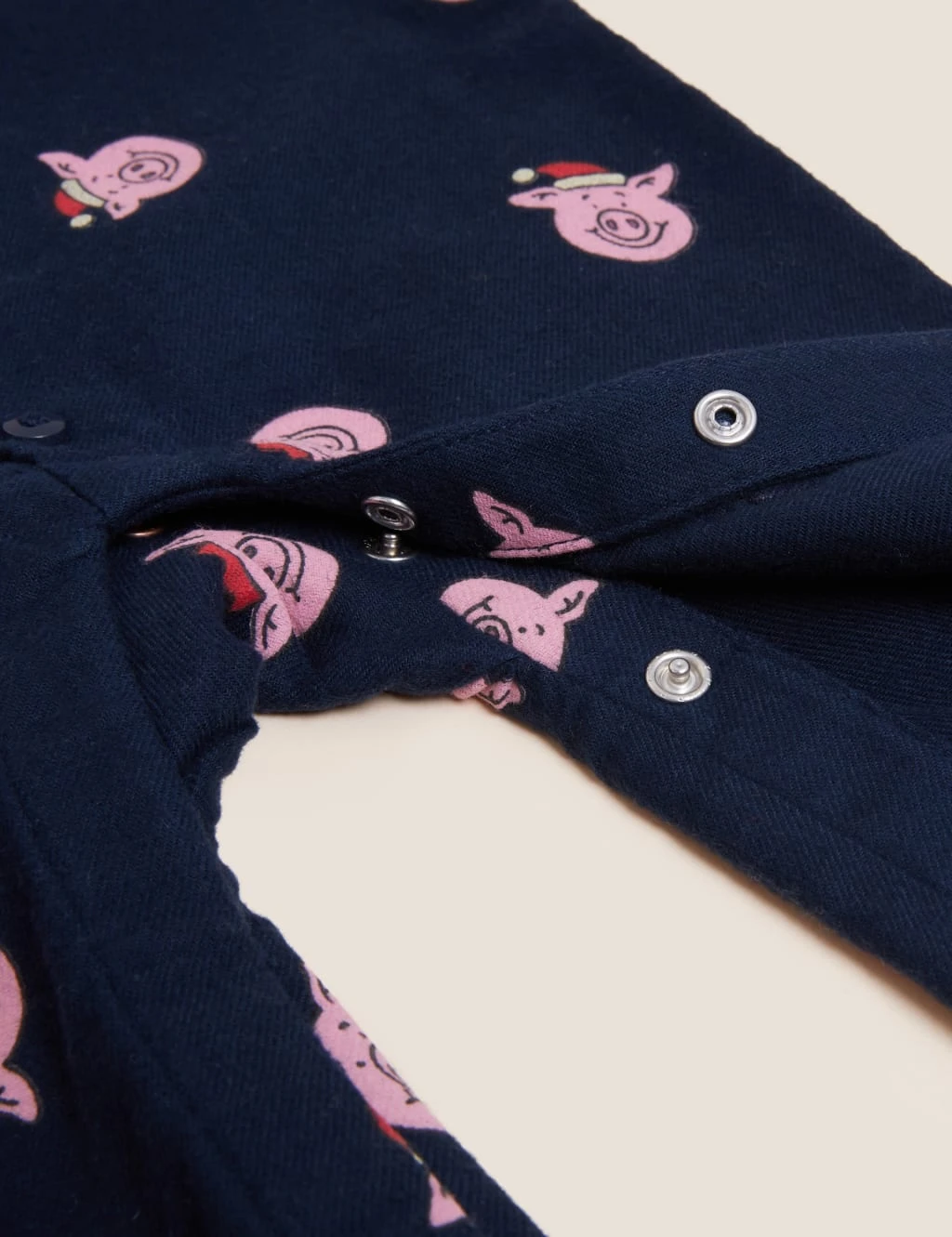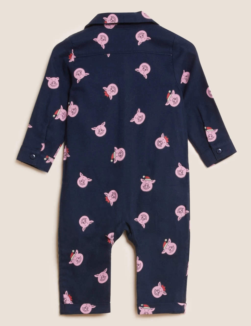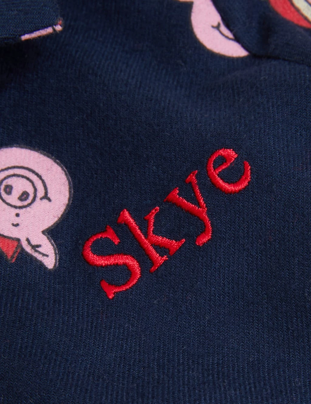 Personalise this Percy Pig™ print romper by having baby’s name embroidered on the chest in red lettering. This festive design is cut in a comfy regular fit from breathable pure cotton and features poppers at the gusset for swift changes. The collared neck and button-through closure add classic styling details. We only ever use responsibly sourced cotton for our clothes.