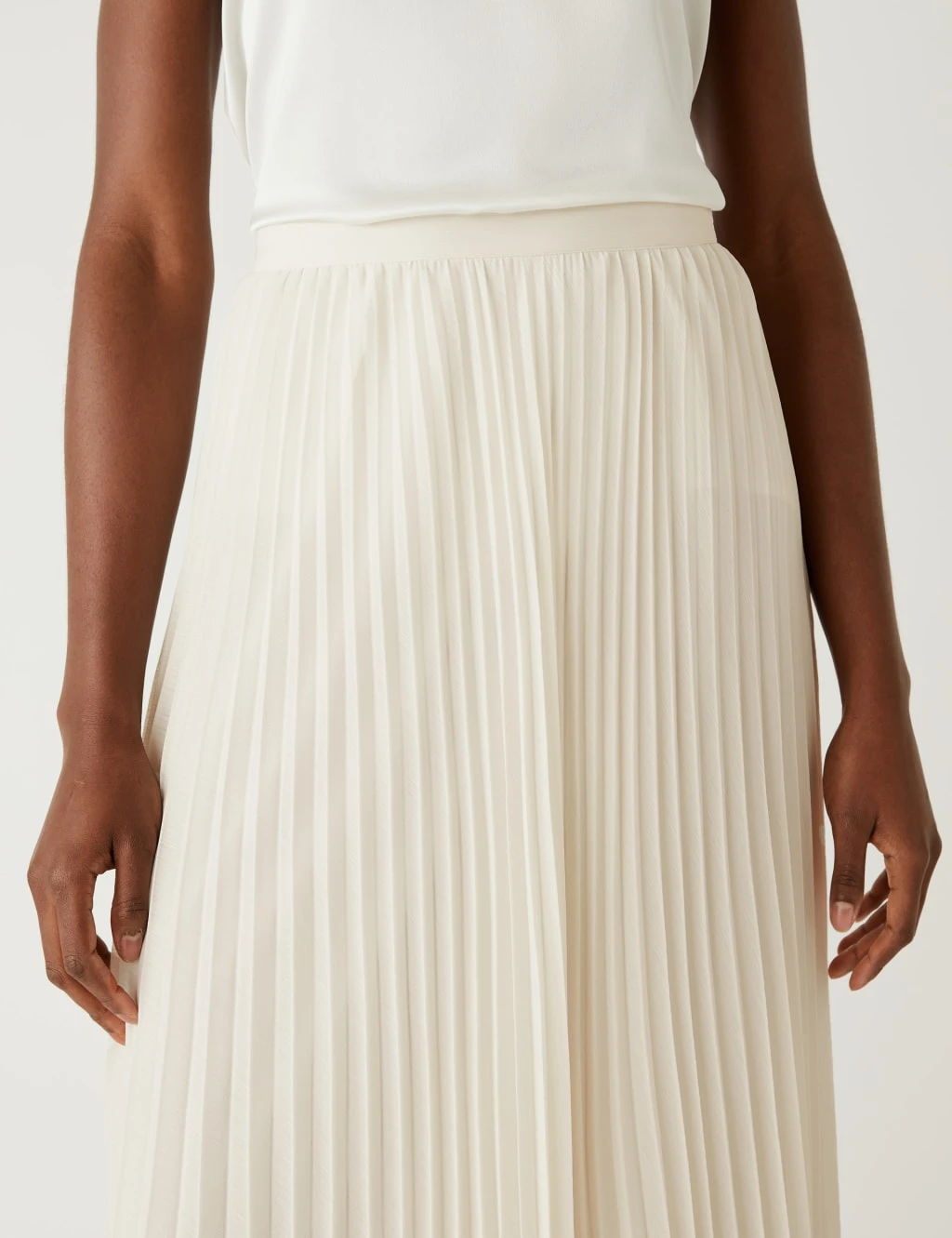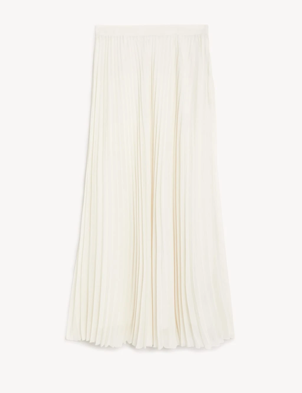 This plisse skirt is a lesson in elegant style. It’s designed in a flattering midaxi length, with delicate pleated details. A secure button and zip at the back neatly fasten the skirt.