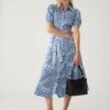 Slip into this dainty tea dress by Finery London for a timeless look. It’s crafted in a regular fit, with a square neck and a swishy midi skirt, creating an elegant shape. Short puff sleeves add a touch of volume, while pearly buttons on the bodice give a classic effect. All-over polka dots offer a fun flourish.