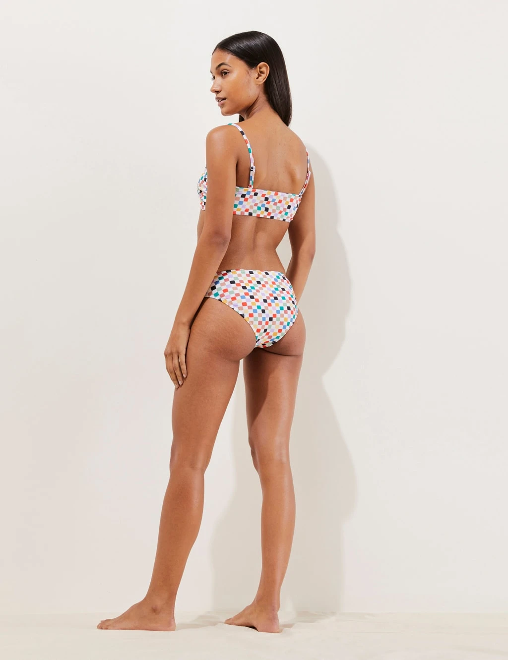 Make a splash by the pool in this chequerboard bikini top from Albaray. It’s made in a flattering bandeau style with dainty spaghetti straps. The cups are unwired and non-padded to give a soft, natural outline. Made with recycled polyester.