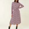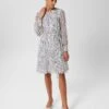 With its floaty overskirt and standout print, this dress from Hobbs has an abundance of charm. The regular-fitting style comes in at the waist with a tie belt, before flaring out into a full midi skirt. Its high neck finishes in a small frill. Look out for stylish details such as a pleated panel at the front, see-through long sleeves and a smart row of buttons.