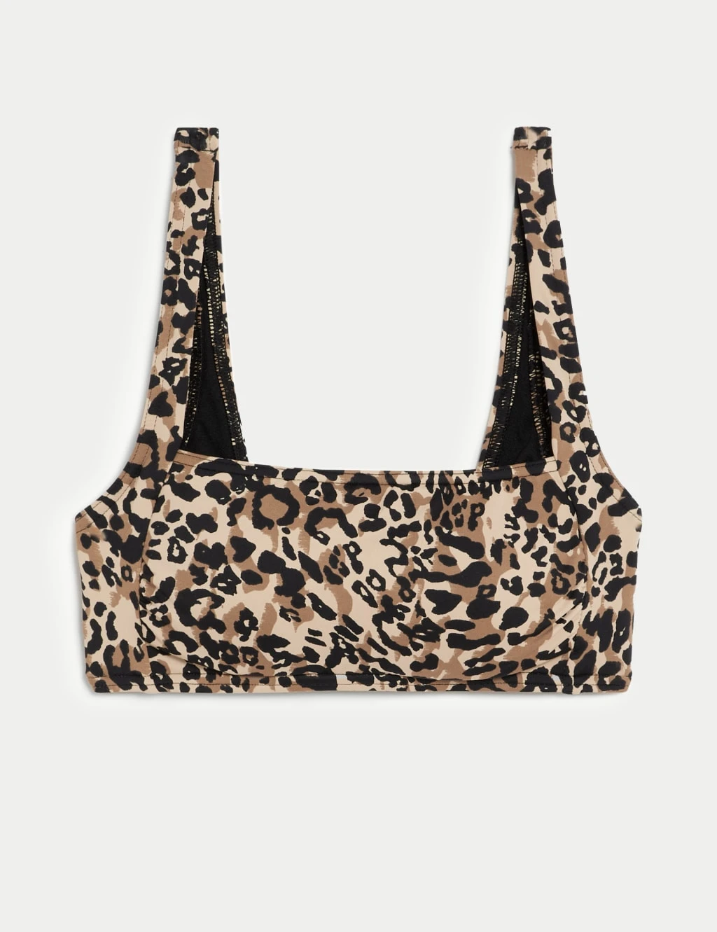 Make a statement at the pool with this playful printed bikini top. It has a stylish square neckline and padded cups for a smooth look. The chlorine-resistant fabric contains added stretch for a flexible feel and has a Sun Smart UPF50+ finish that helps to protect against harmful UV rays.