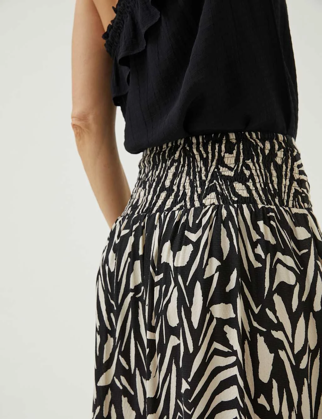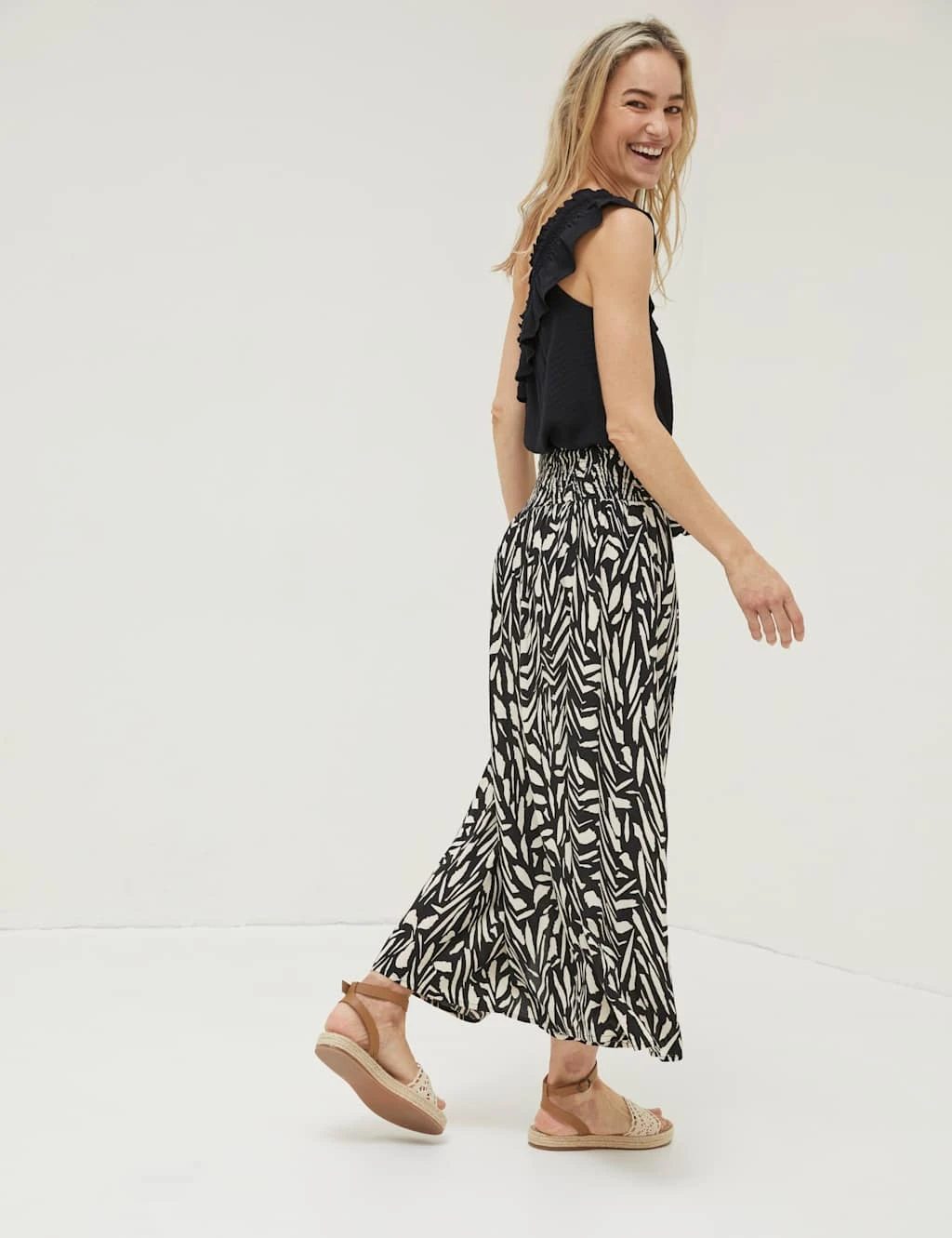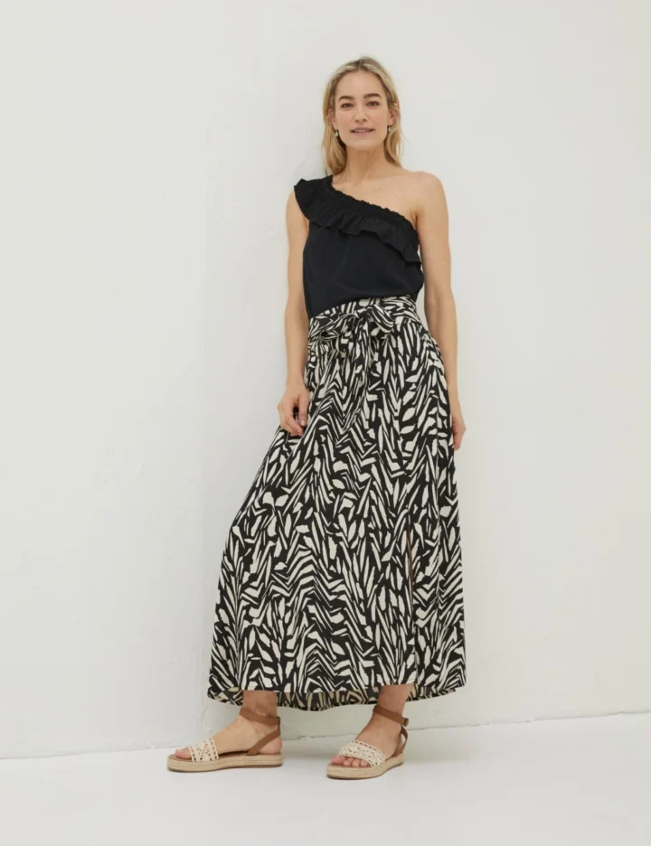 Stand out on casual days in this bold printed skirt from FatFace. It’s cut in a flattering A-line shape, with a comfy shirred waistline. A wide tie at the waist and a side split at the maxi-length hem create fluttery movement.