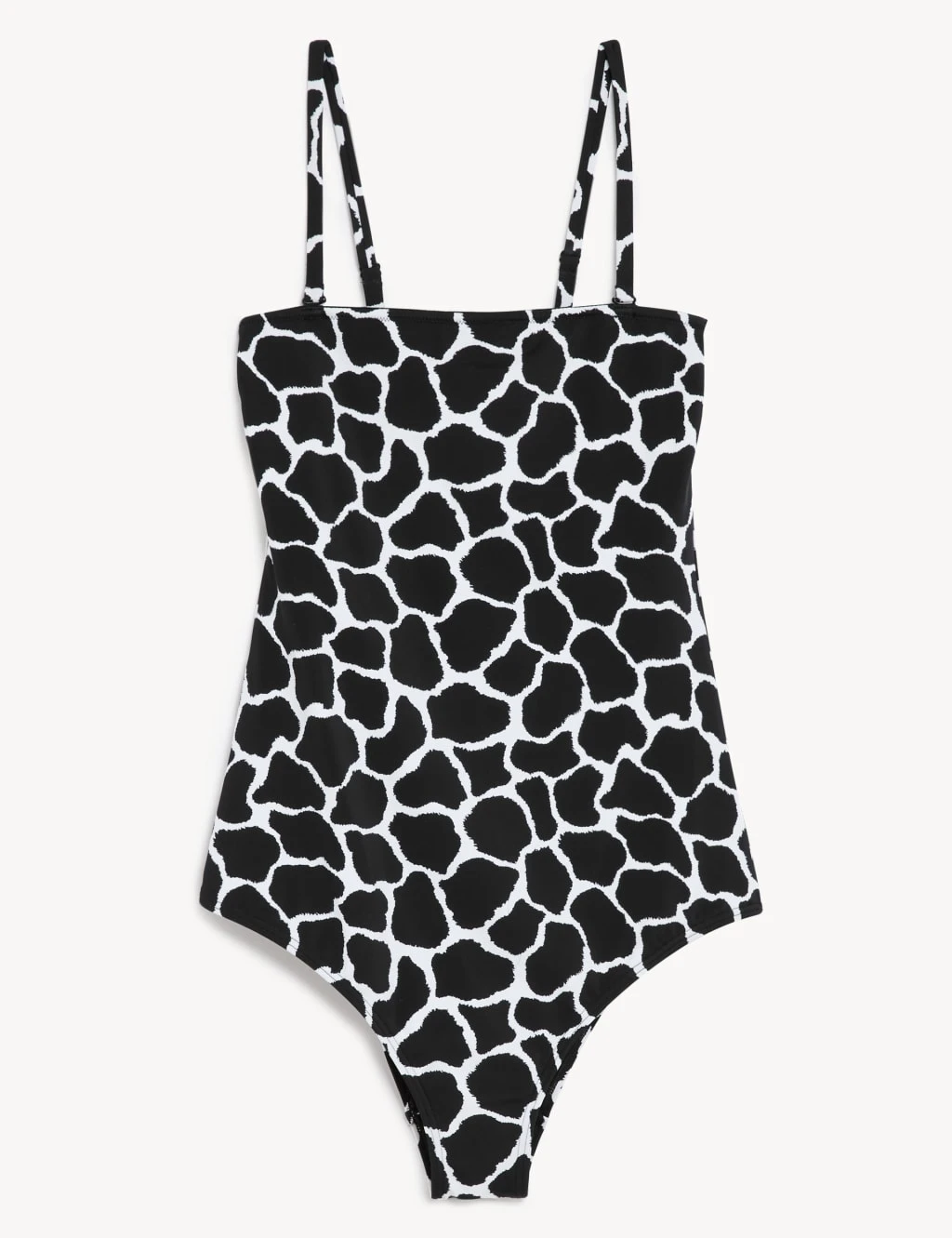This square-neck swimsuit has a striking bold print. Regular fit, with a lining and added stretch for extra comfort. The slim adjustable straps can be removed for a classic bandeau look. Our clever Sun Smart UPF50+ fabric helps to protect you from harmful UV rays.