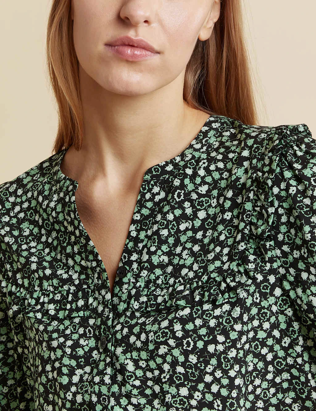 Be the first to review “Printed V-Neck Ruffle Blouse” Cancel reply