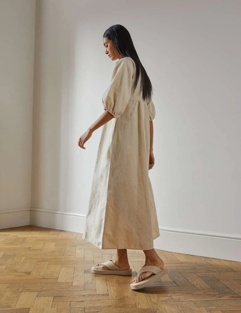 Pure Linen V-Neck Midaxi Shift Dress