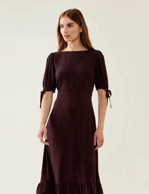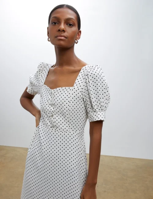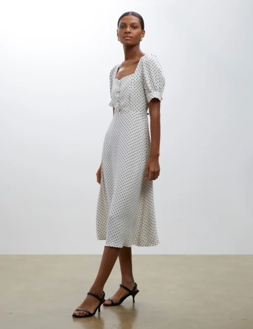 Polka Dot Square Neck Midi Tea Dress