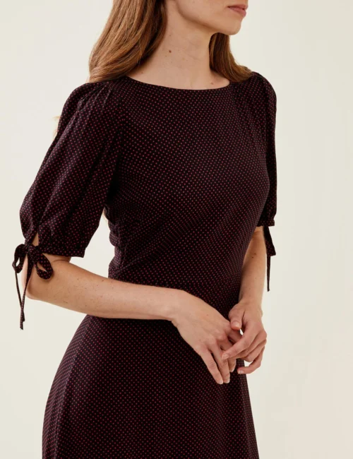 Polka Dot Tie Puff Sleeve Midi Tea Dress