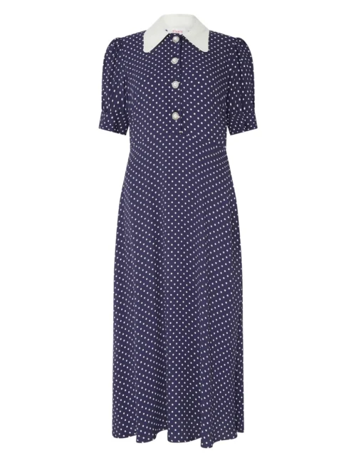 Polka Dot Collared Midi Tea Dress
