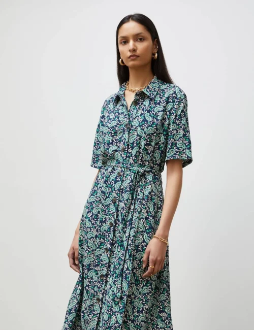 Paisley Tie Waist Midi Shirt Dress