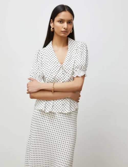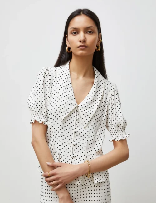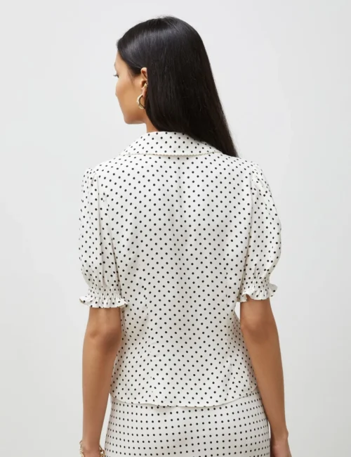 Polka Dot Collared V-Neck Blouse