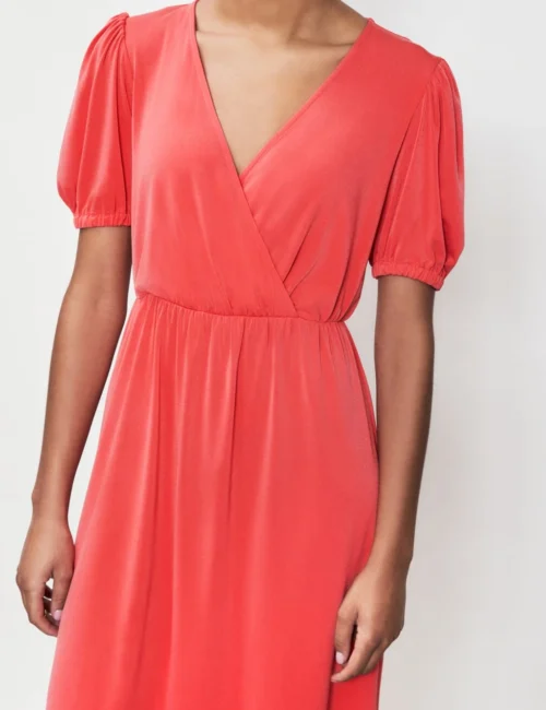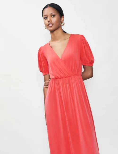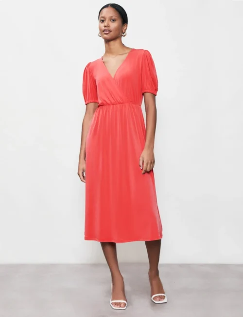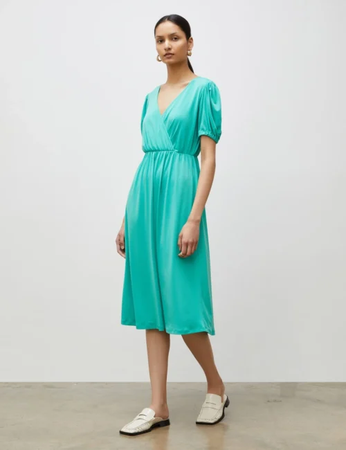 V-Neck Puff Sleeve Midi Waisted Dress