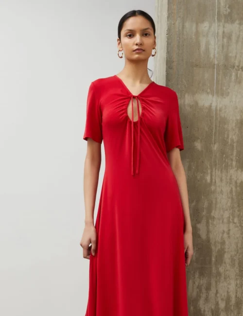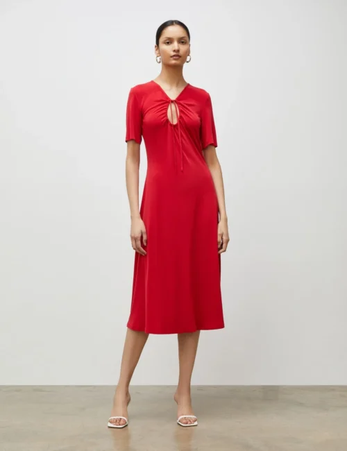 Tie Neck Midi Tea Dress