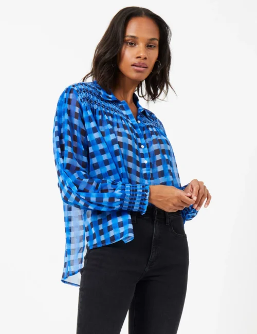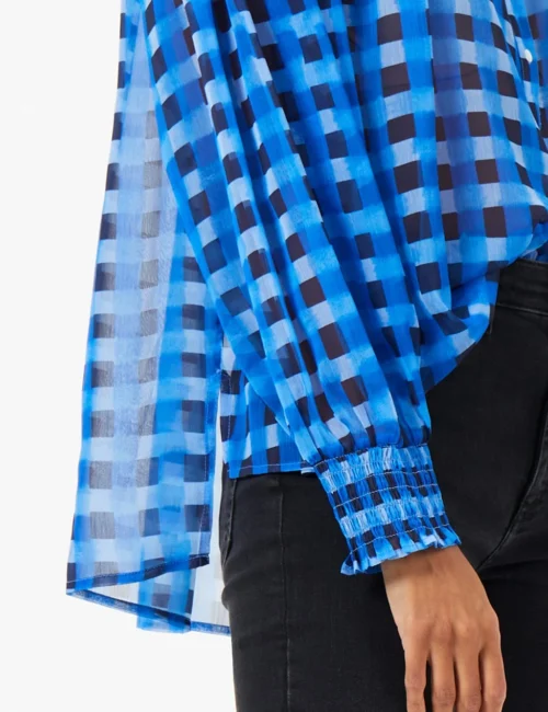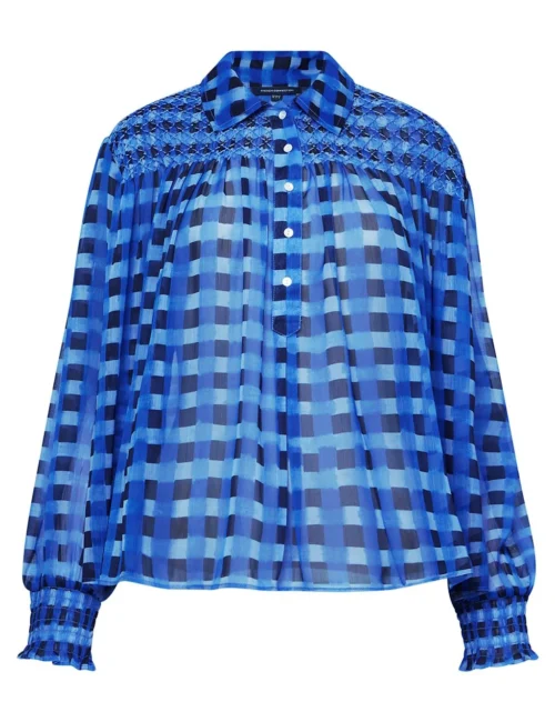 French Connection Checked Collared Relaxed Popover Blouse
