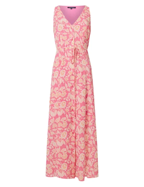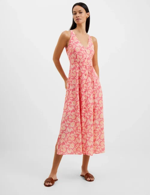 French Connection Crepe Printed V-Neck Belted Midi Tea Dress