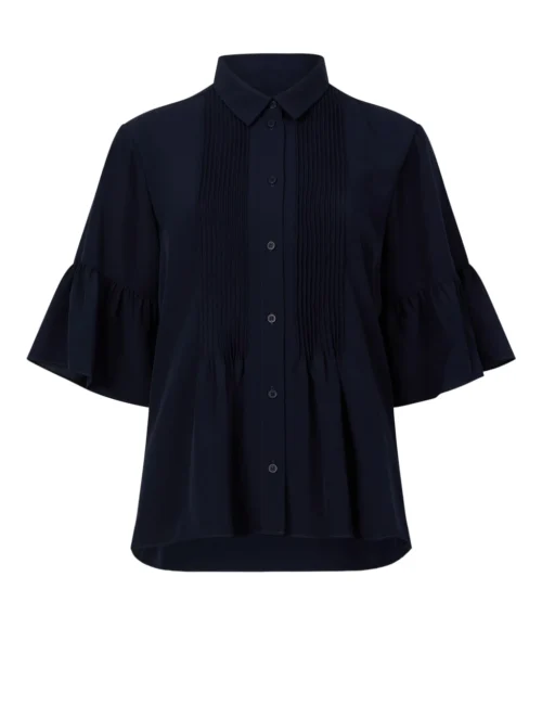 French Connection Crepe Collared Relaxed Pintuck Blouse