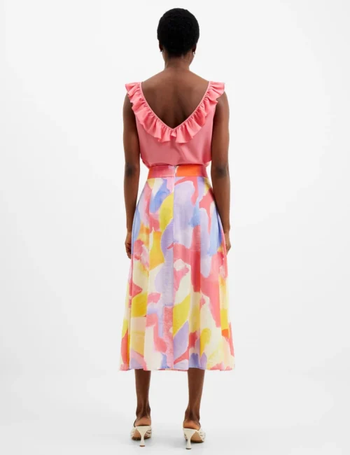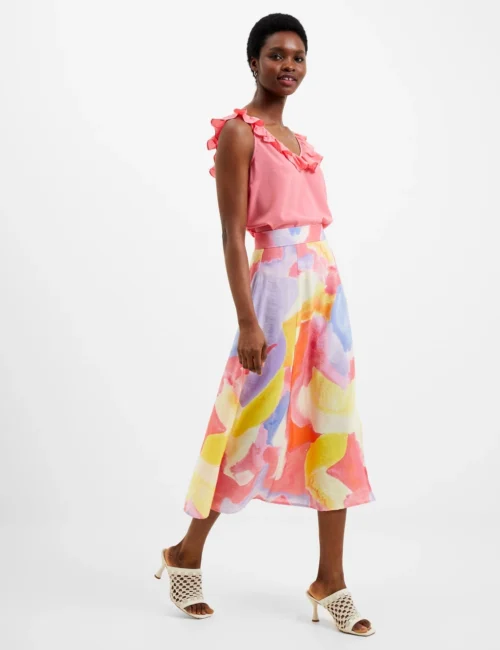 French Connection Colour Block Split Front Midi Slip Skirt