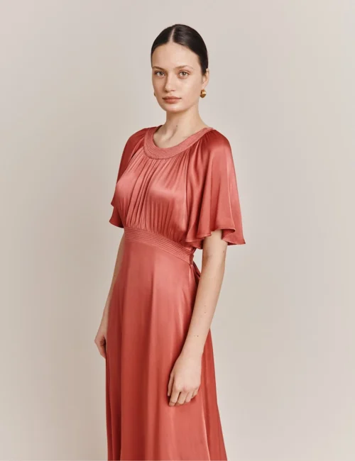 Ghost Satin Round Neck Midi Waisted Dress