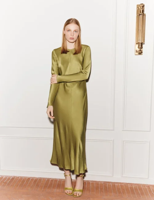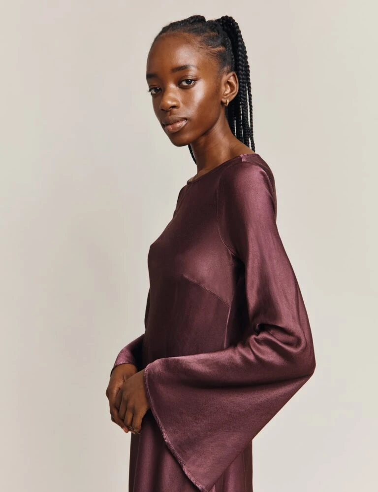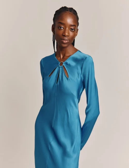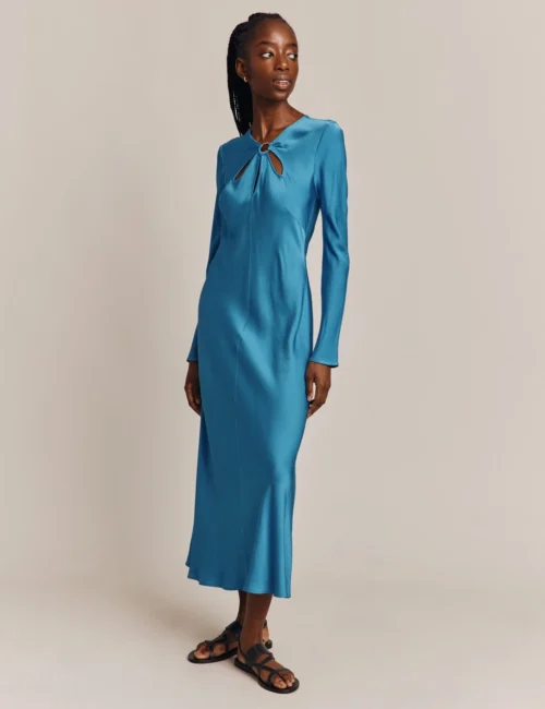 Ghost Satin Round Neck Midi Column Dress