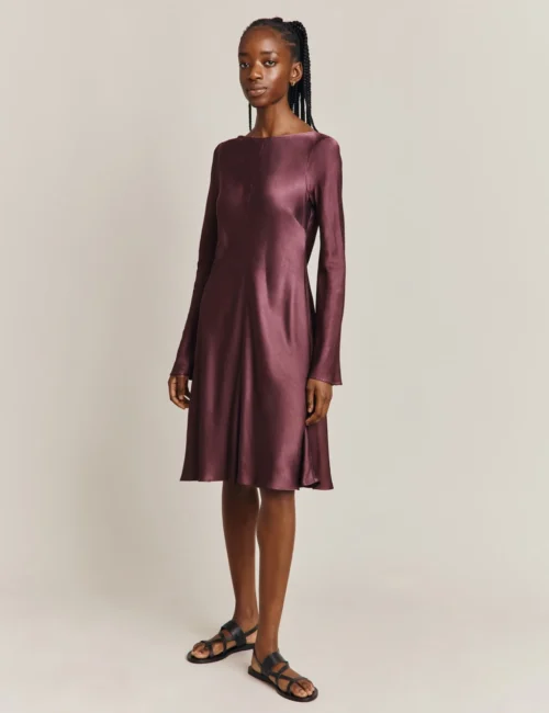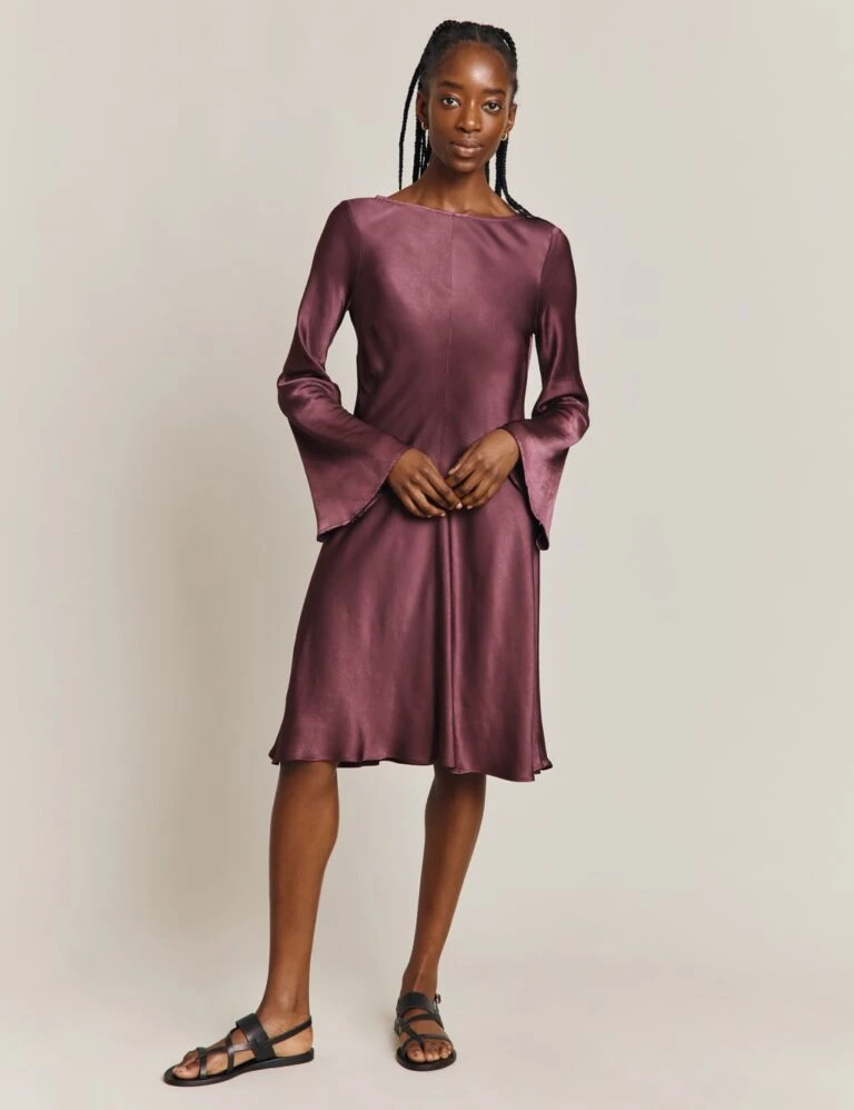 Ghost Satin Round Neck Knee Length Swing Dress