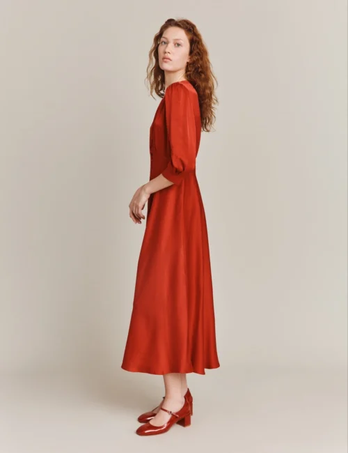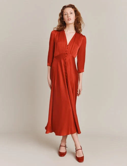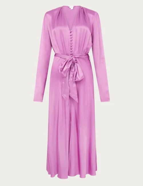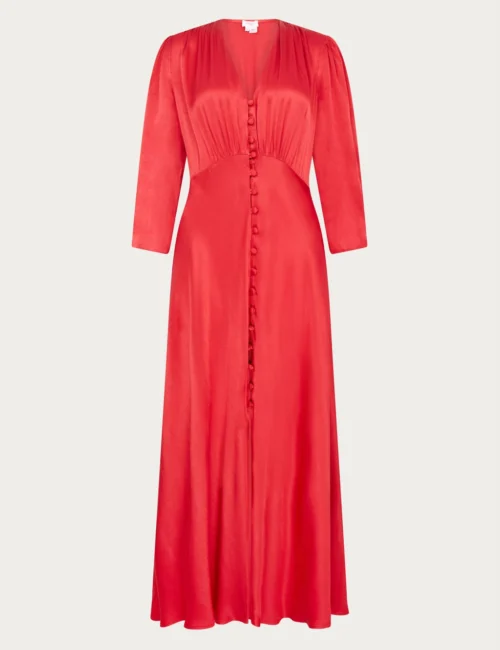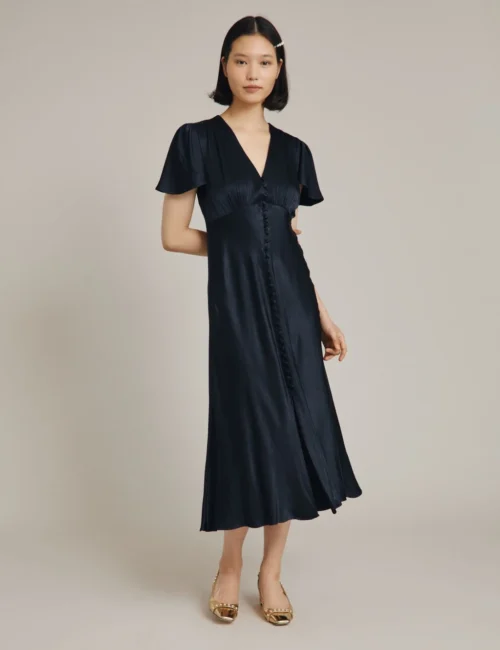 Ghost Satin V-Neck Button Front Midaxi Tea Dress