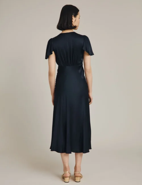 Ghost Satin Tie Detail Midi Waisted Dress