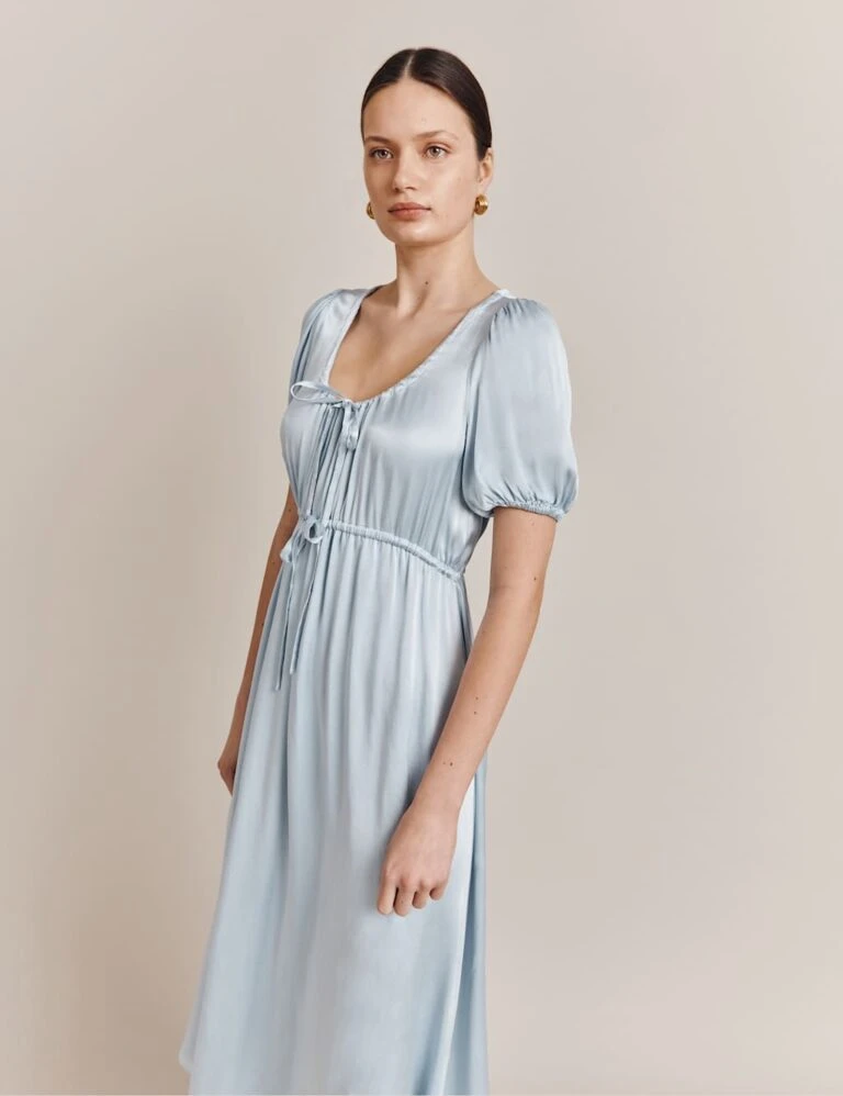 Ghost Satin Tie Detail Midi Waisted Dress