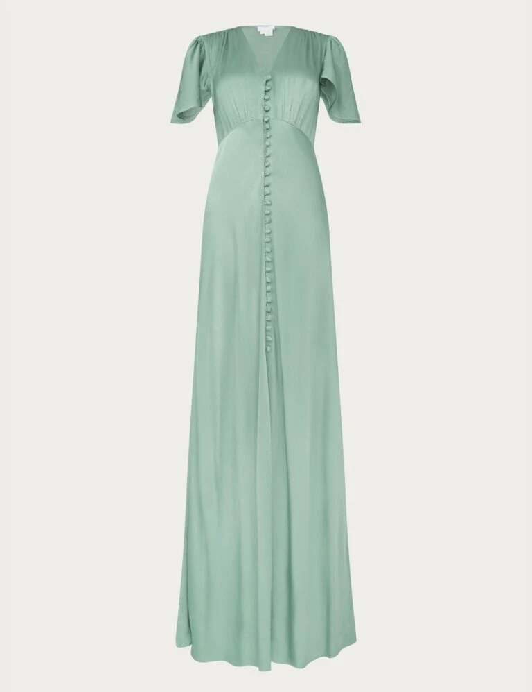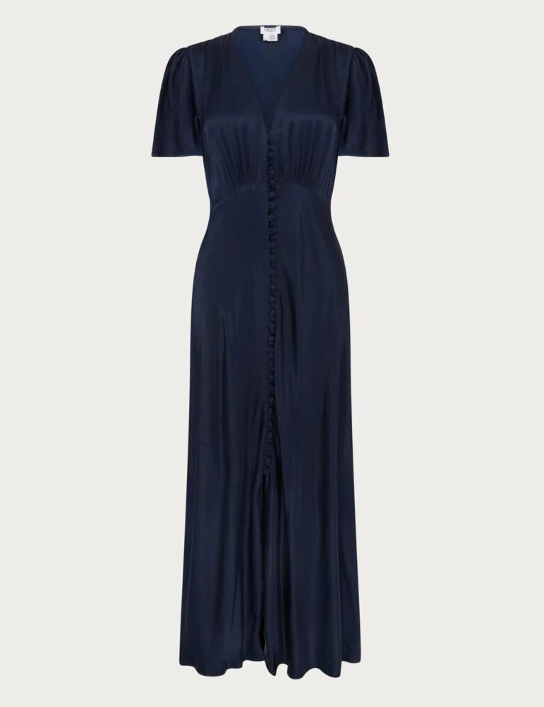 Ghost Satin V-Neck Button Front Midaxi Tea Dress