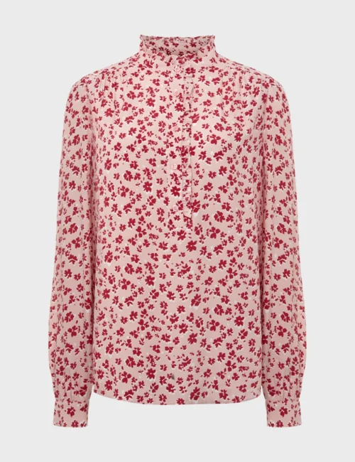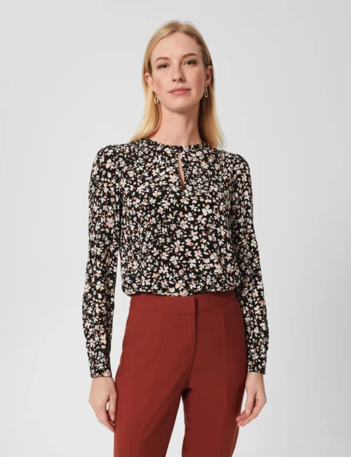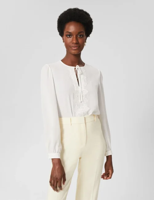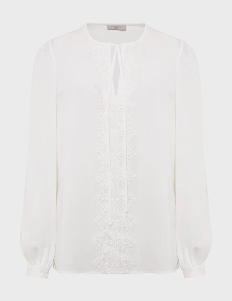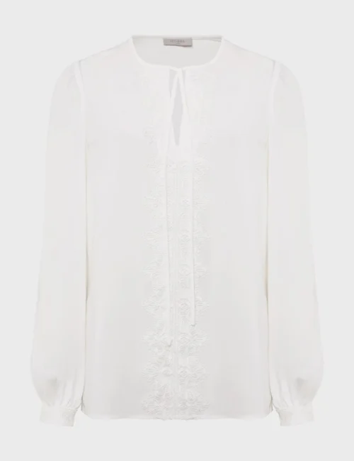 Embroidered Tie Neck Blouson Sleeve Blouse