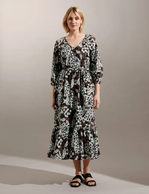 Jaeger Pure Cotton Floral V-Neck Midi Tiered Dress