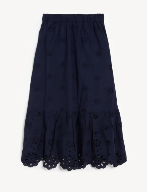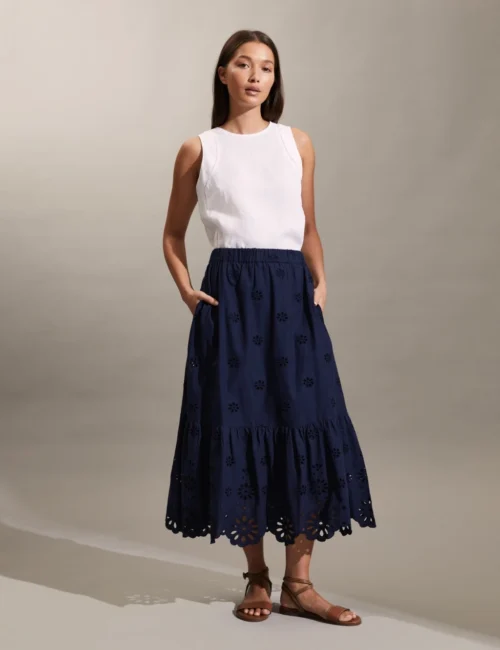 Jaeger Pure Cotton Broderie Midi Tiered Skirt