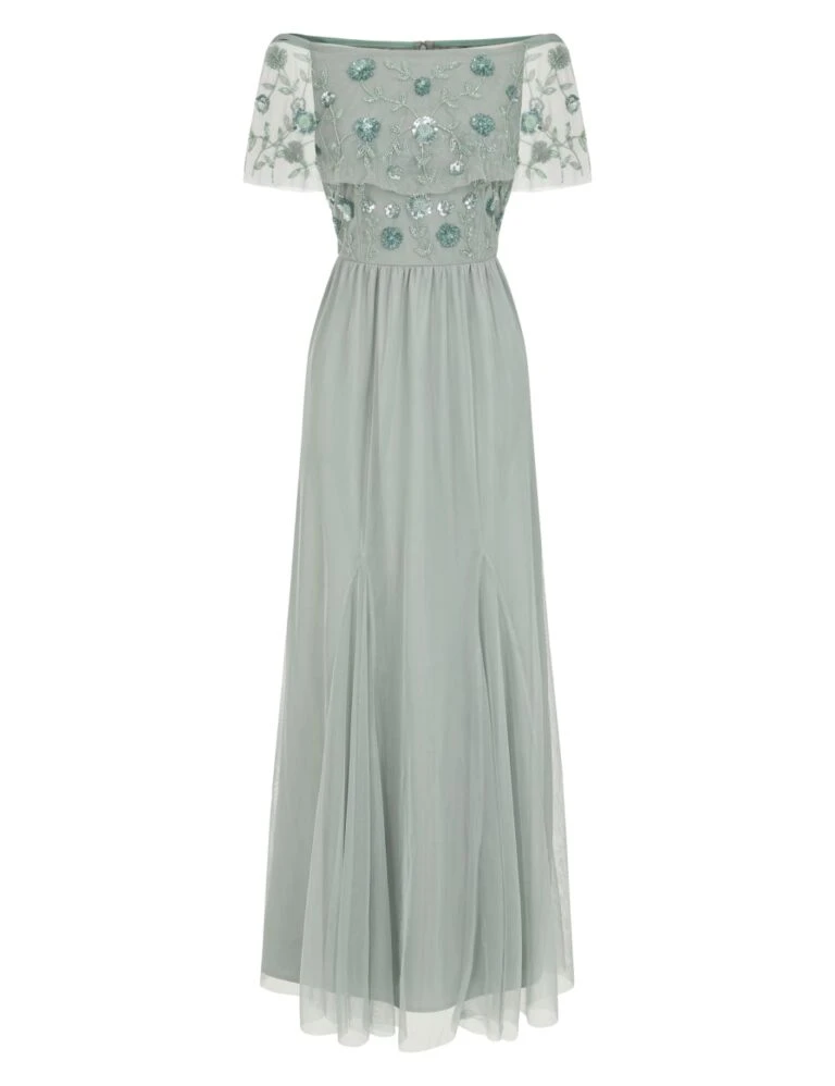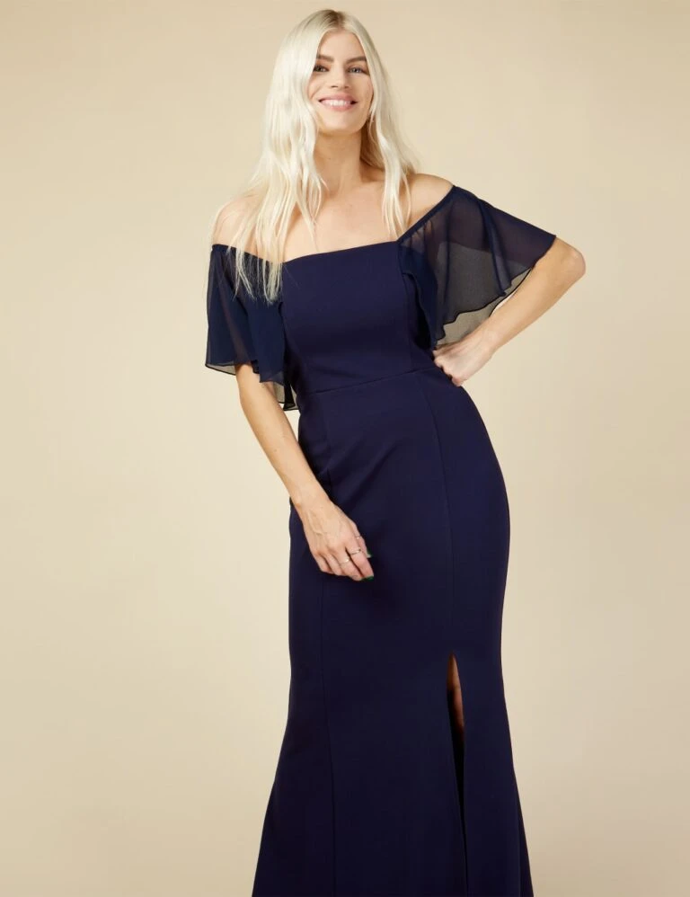 Little Mistress Bardot Frill Sleeve Maxi Dress