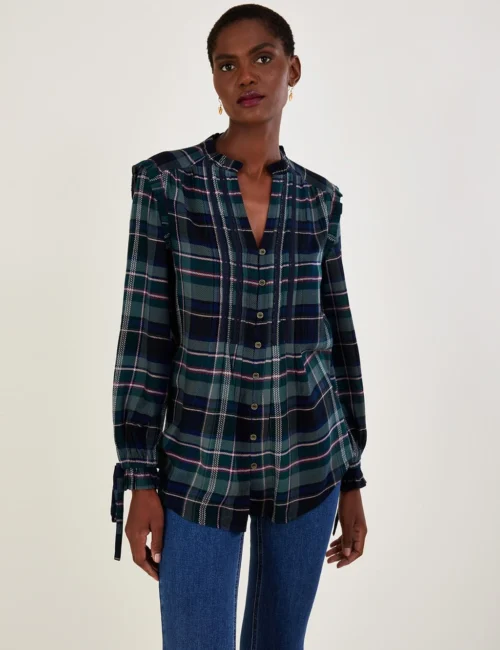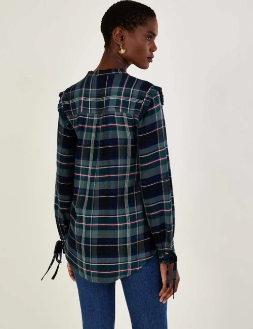 MONSOON Checked V-Neck Frill Detail Longline Top