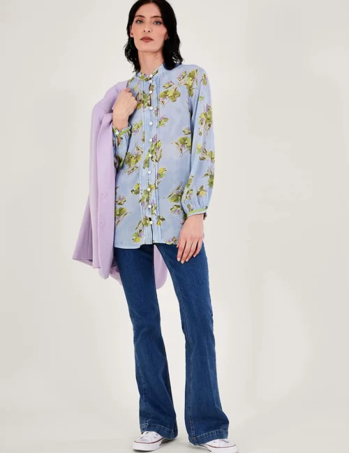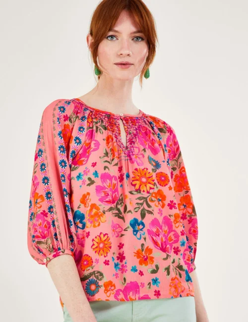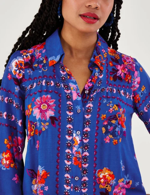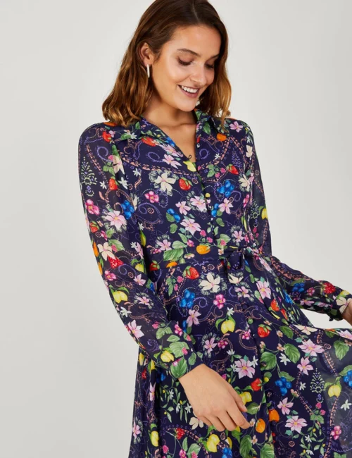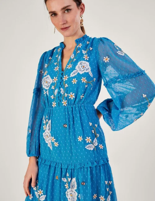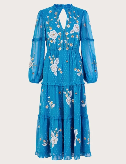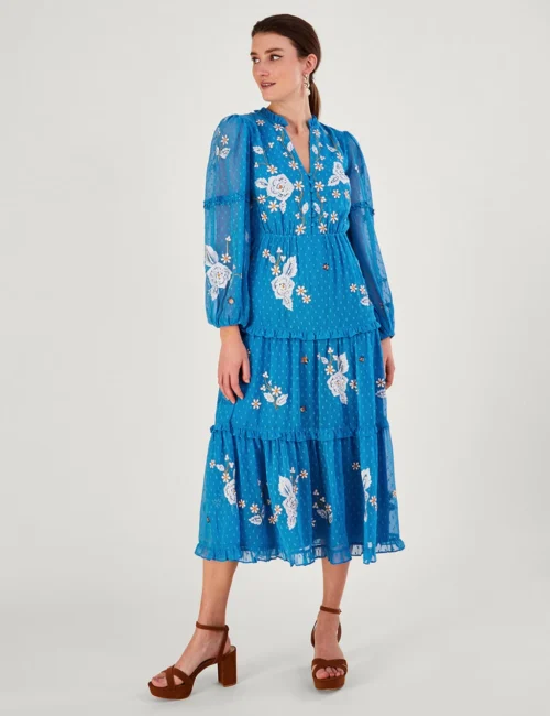 MONSOON Floral Embroidered V-Neck Midi Tiered Dress