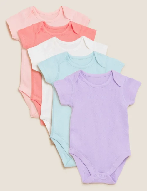 No Brand 5pk Pure Cotton Pointelle Bodysuits (6½lbs -3 Yrs)