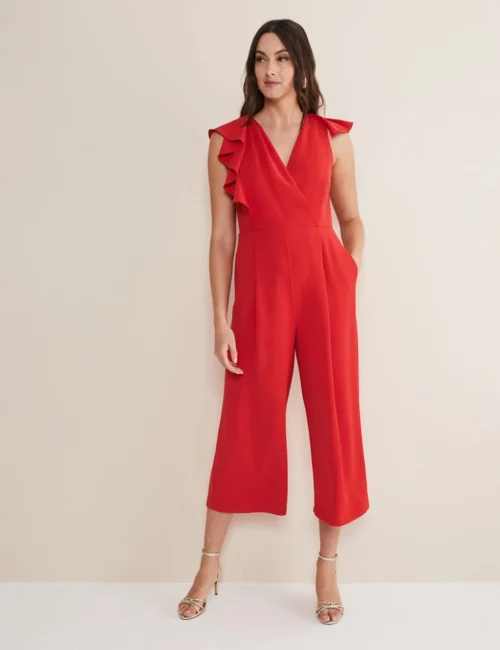 Frill Detail Short Sleeve Wide Leg Jumpsuit