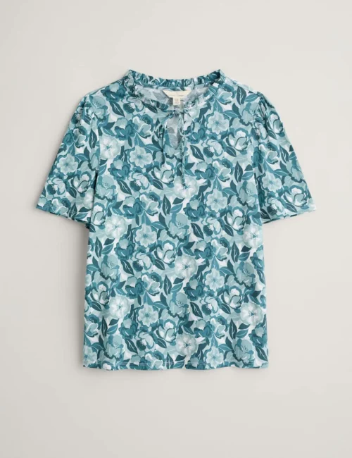 Cotton Blend Floral Frill Detail Top